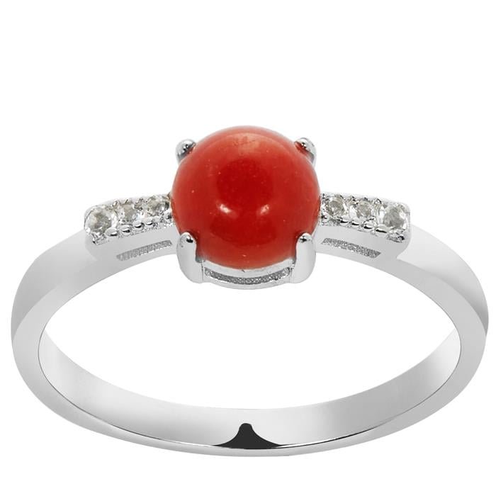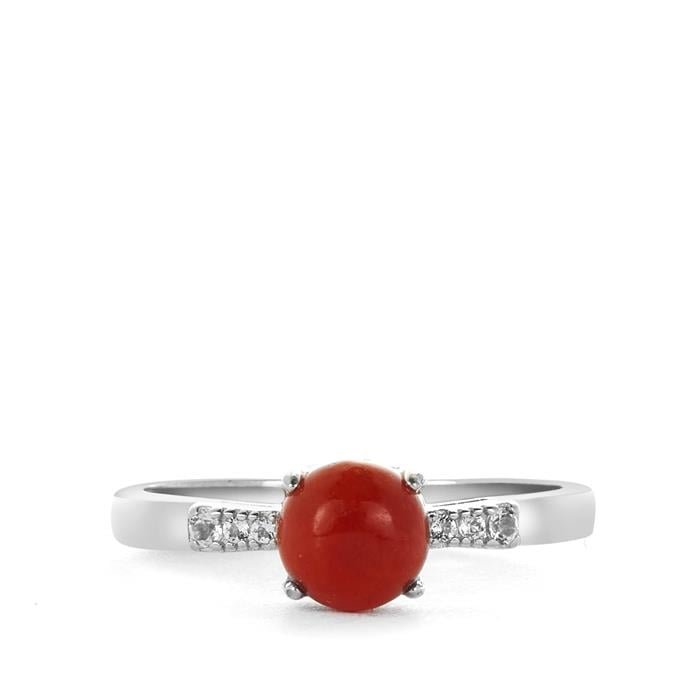 Type A Burmese Red Jadeite Ring with White Topaz in Sterling Silver 1.11cts