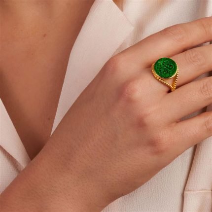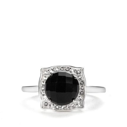 A classically designed Ring from the Annabella Collection, made of Sterling Silver featuring 4.55cts of amazing Type A Olmec Jadeite and White Topaz.