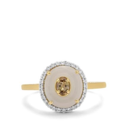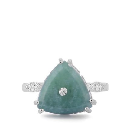 Type A Olmec Jadeite Ring with White Topaz in Sterling Silver 4.55cts